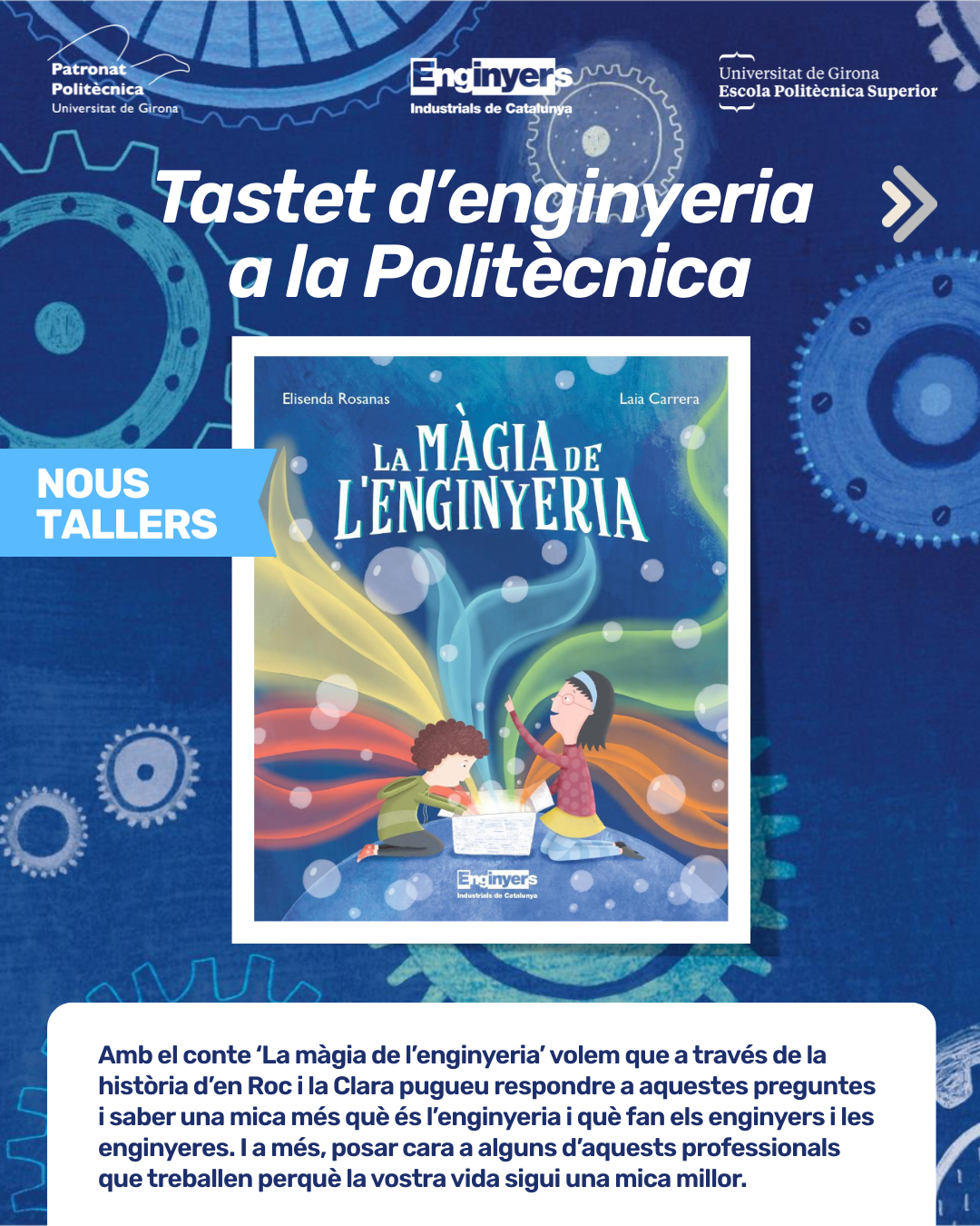 La sessió s’inicia amb la presentació del llibre La màgia de l’enginyeria a la Biblioteca del Campus de Montilivi i continua amb un recorregut per diversos tallers pràctics repartits per diferents espais de la Politècnica.
